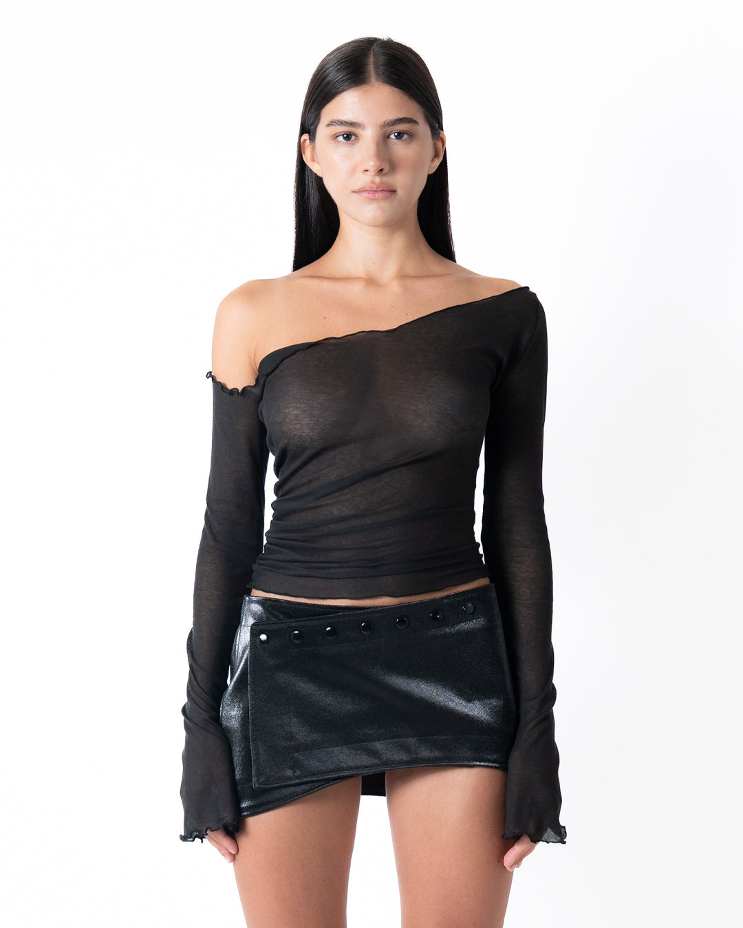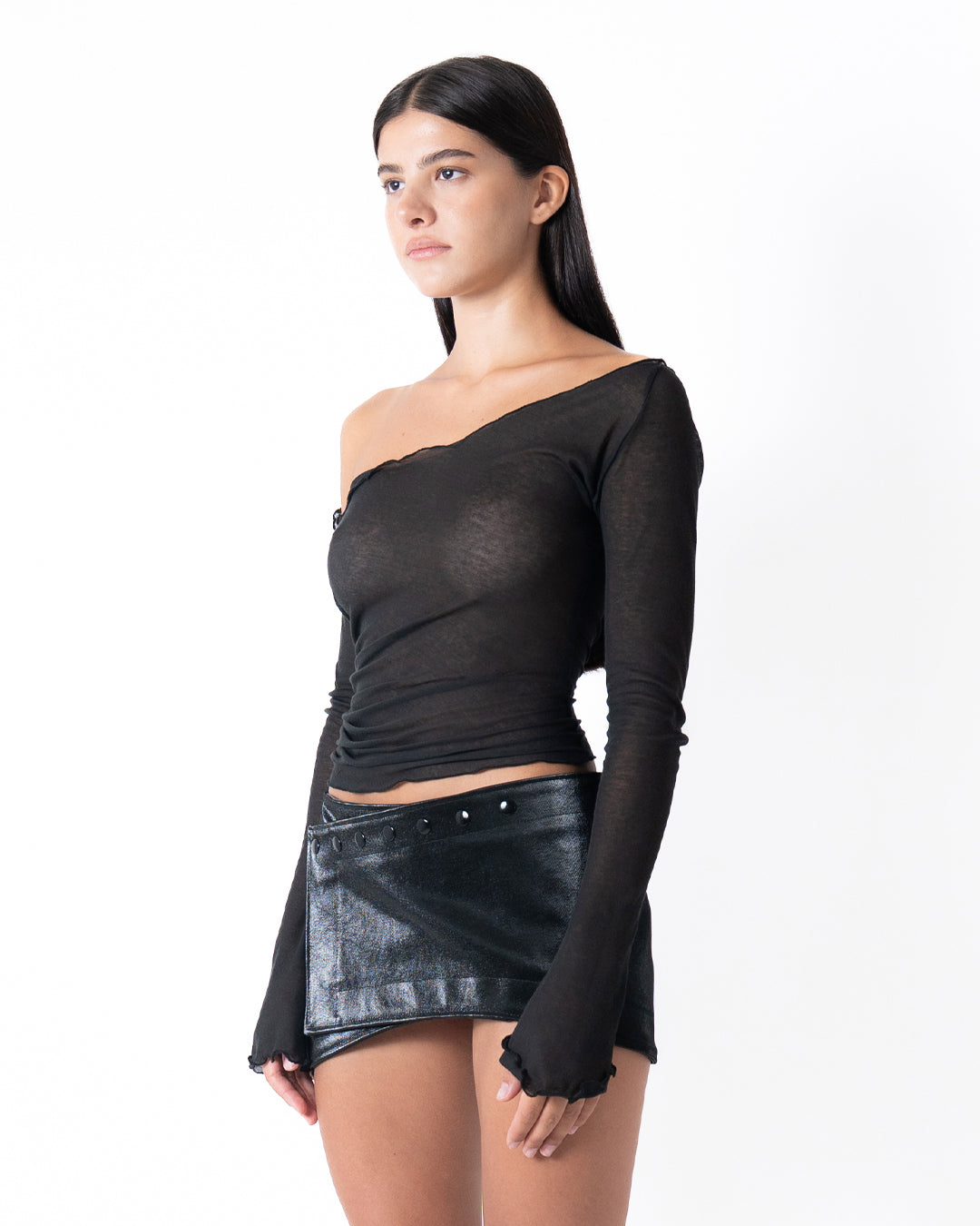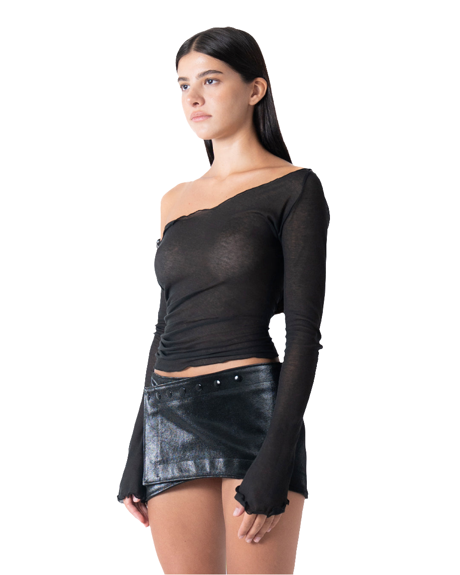 ASYMMETRIC SHEER TOP IN BLACK
