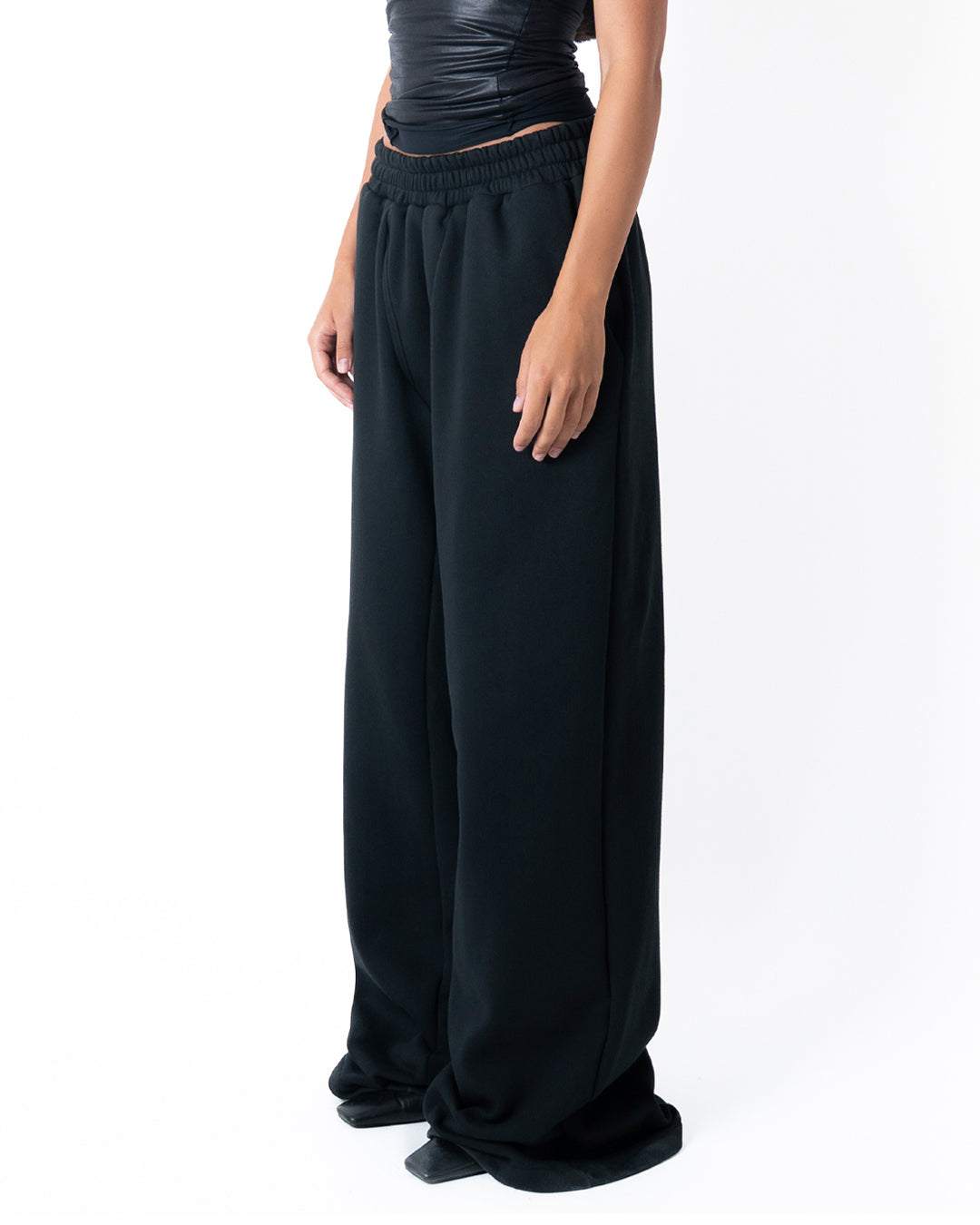 DEADSTOCK COTTON JERSEY SWATPANTS. LOOSE FIT. FRONT FLY AND SIDE POCKETS. MAXI GLOSSY LOGO ON THE BACK.